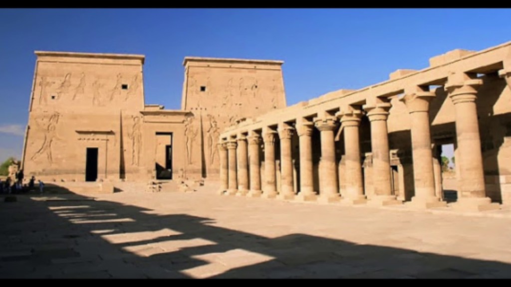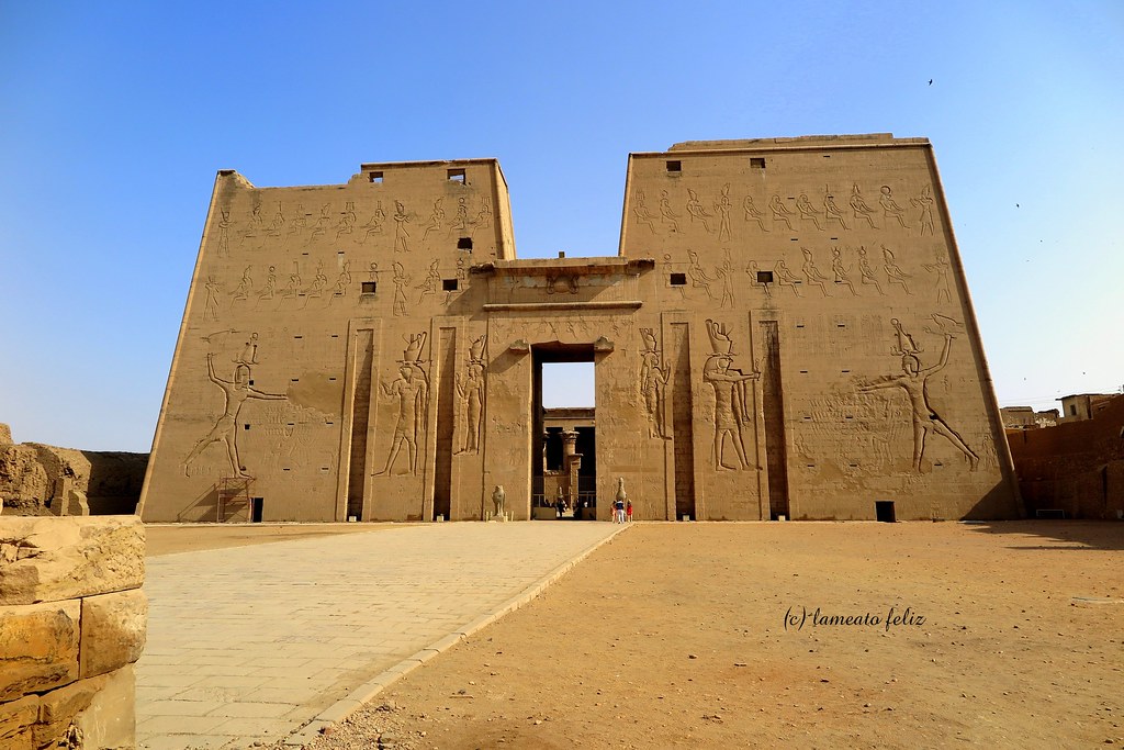 La arquitectura egipcia se caracteriza por el uso de muros fuertes, columnas gruesas y sólidas y el uso de pilonos como puertas de entrada a los complejos. Todo habla de estabilidad y fortaleza. Los pilonos eran una especie de puerta de entrada, construidas a manera de pirámides truncas, que se erguían sobre gruesos muros. Los pilonos simbolizaban las paredes del Nilo y ofrecían una majestuosa vista a la entrada de los templos, que demostraba la fuerza y el poder del pueblo egipcio (en ese sentido, actuaban como una especie de arcos del triunfo de su época).